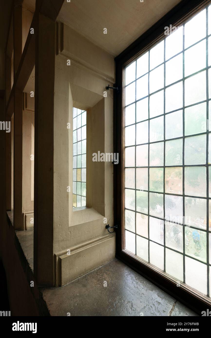 Faded glass windows with a hint of sunlight peeking through, diffused ...