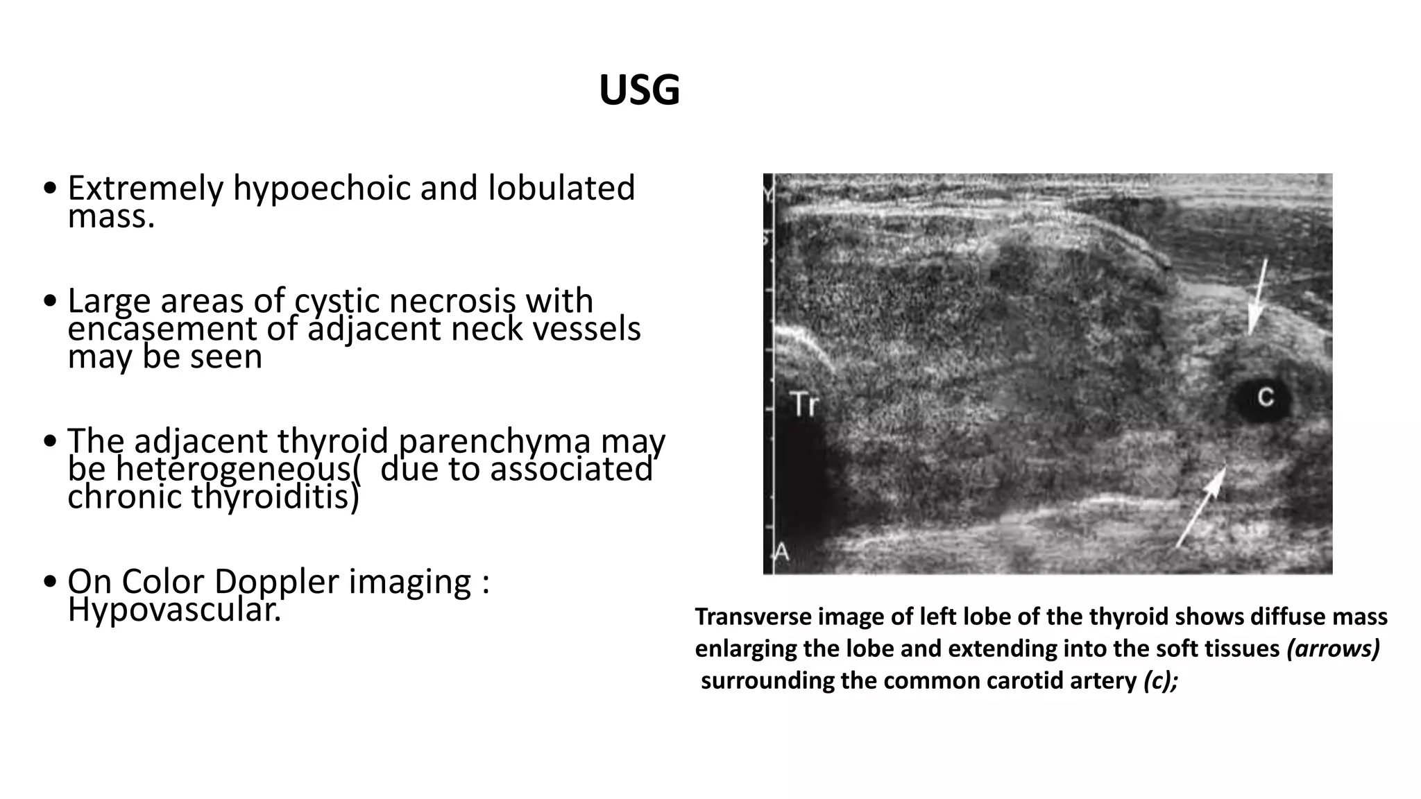 Upper images-thyroid ultrasound: Heterogeneous appearance with cystic ...