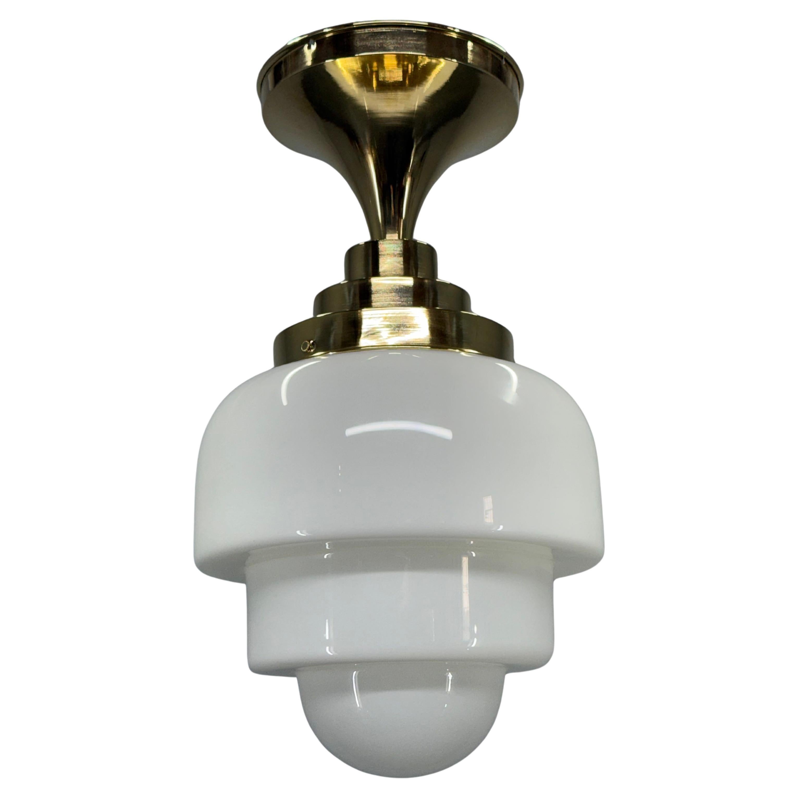 1930s Art Deco Brass and Opaline Glass Flush Mount, Czech For Sale at ...