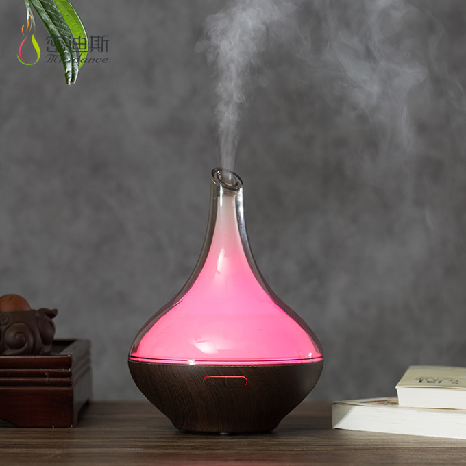 Glass Essential Oil Diffuser with Wood Grain Base, 280ml Aromatherapy ...