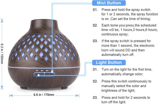 6oz Large Capacity Essential Oil Diffuser - Ultrasonic Humidifier with ...