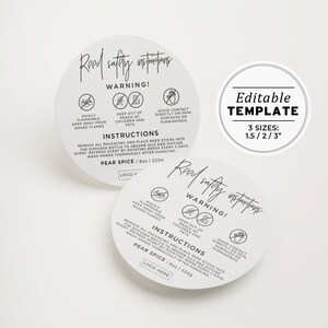 Editable Reed Diffuser Warning Label Template 3 SIZES DIY - Etsy Australia
