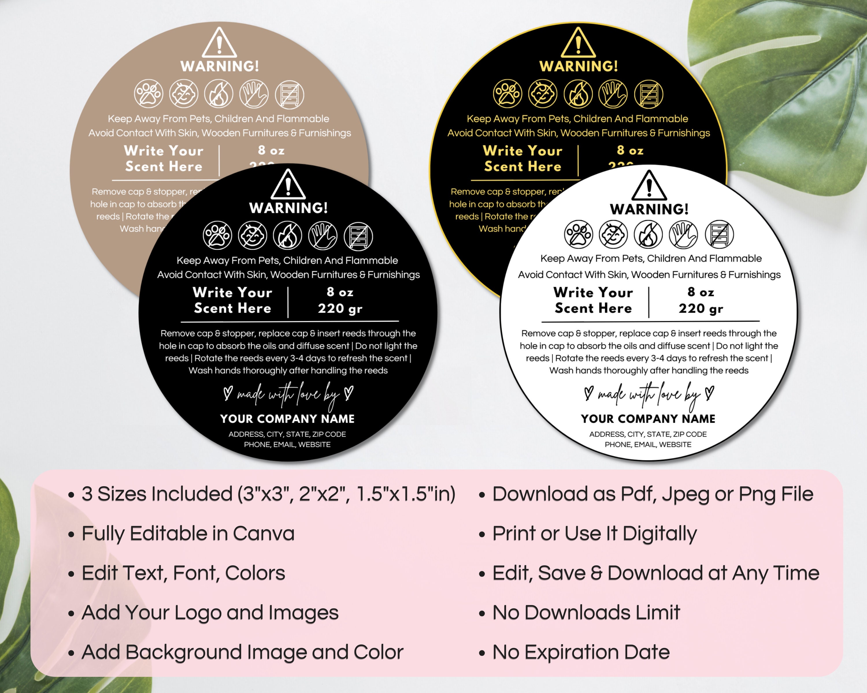 Editable Reed Diffuser Warning Label Template, 3 SIZES DIY Room ...