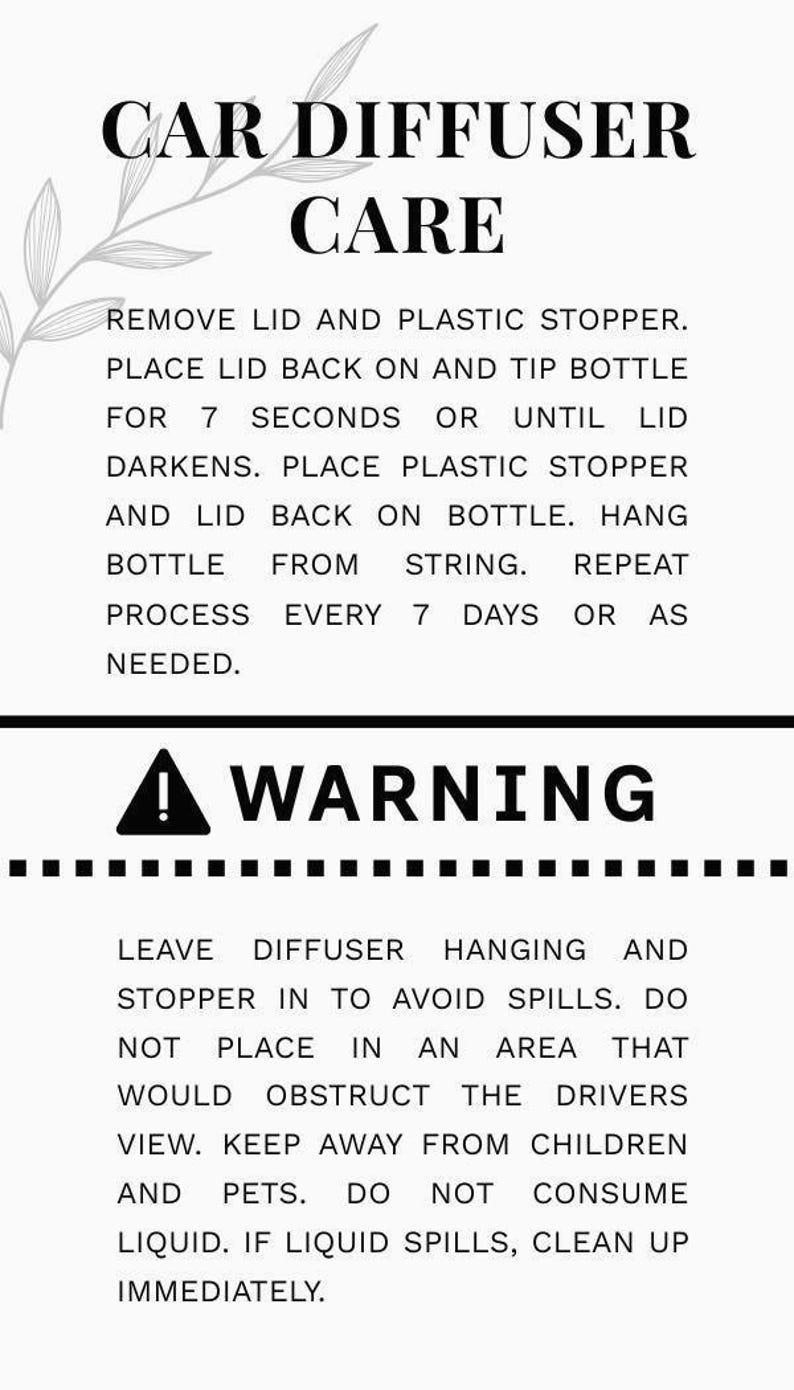Car Diffuser Warning Label - Etsy