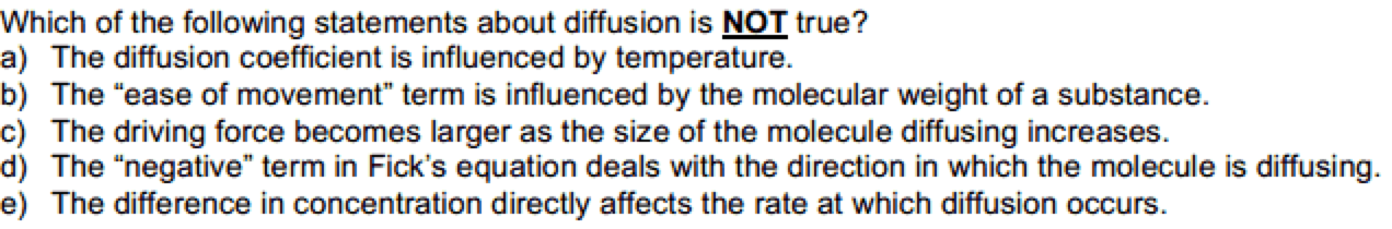 Solved Choose the TRUE statements about diffusion. (choose | Chegg.com