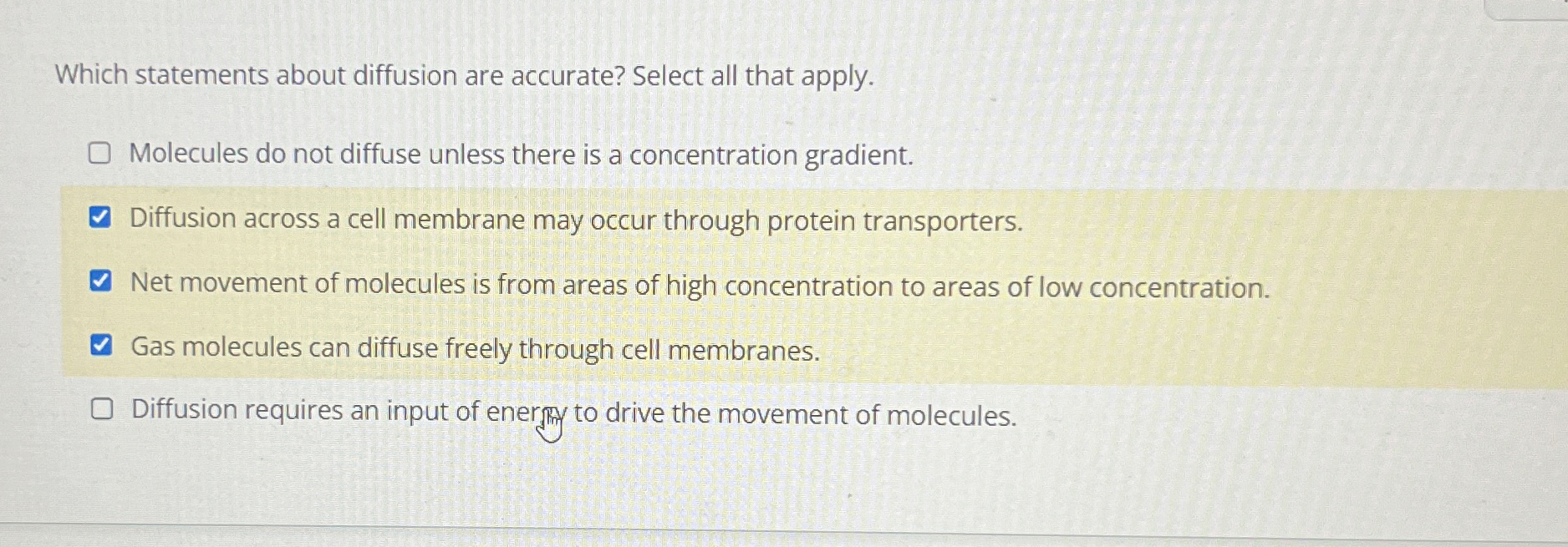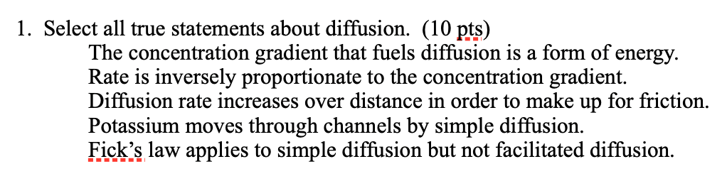 Solved a 1. Select all true statements about diffusion. (10 | Chegg.com