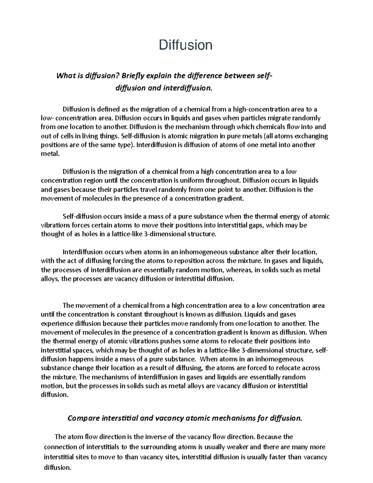 Diffusion (essay) - Diffusi on What is diffusion? Briefly explain the ...