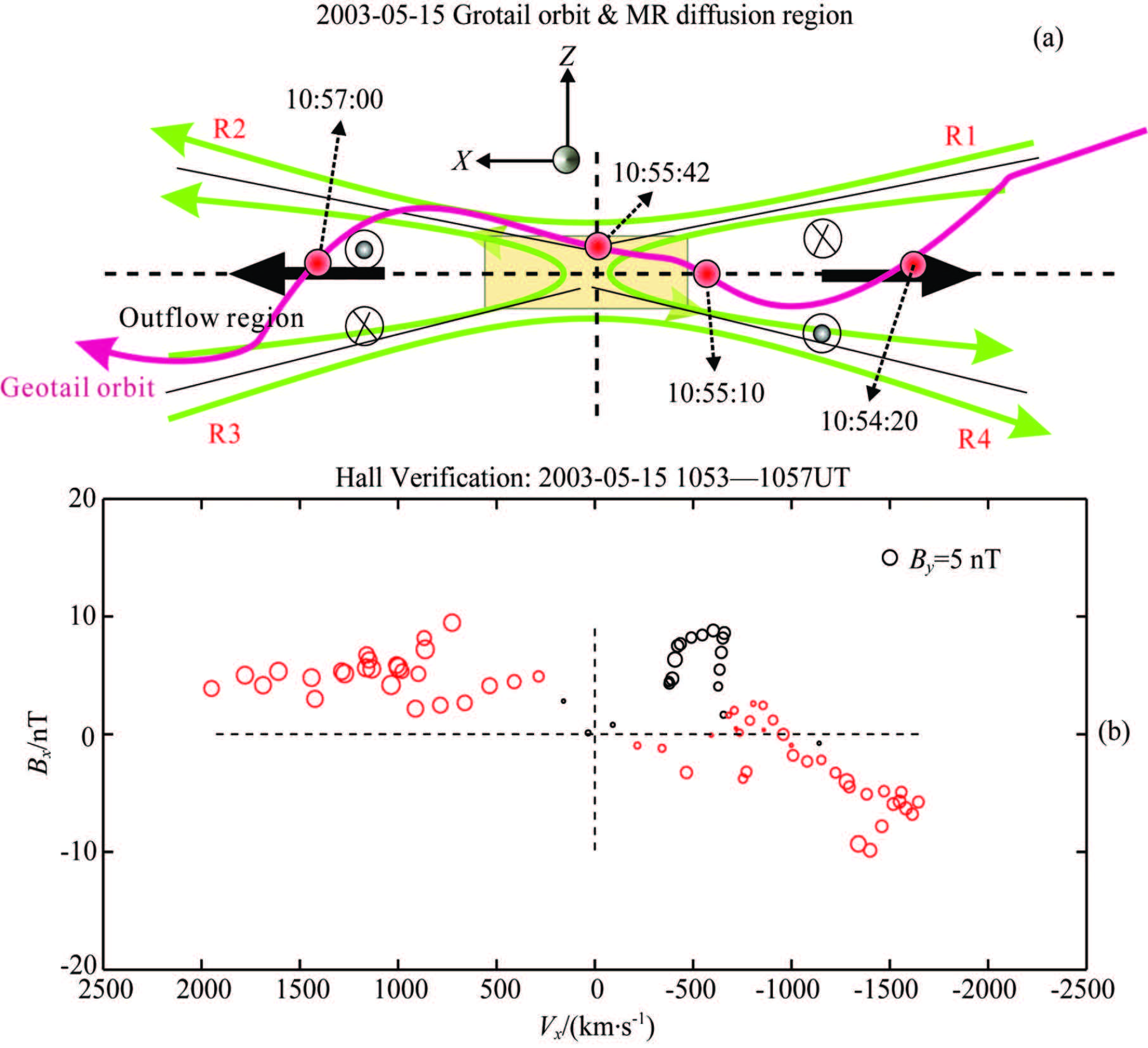 (a) Sketch of magnetic field lines upstream of the diffusion region (z ...