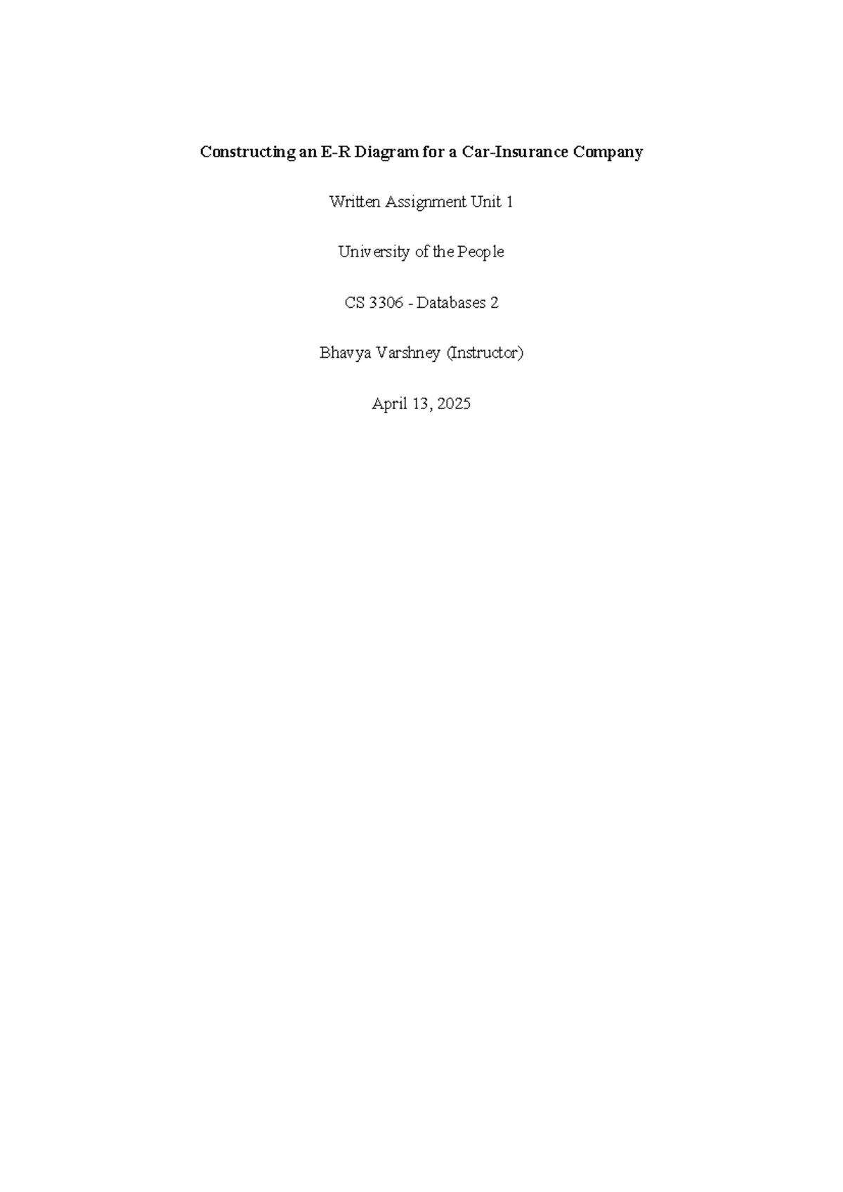 WA1: Diagram Construction for Company - CS 3306 Databases 2 - Studocu