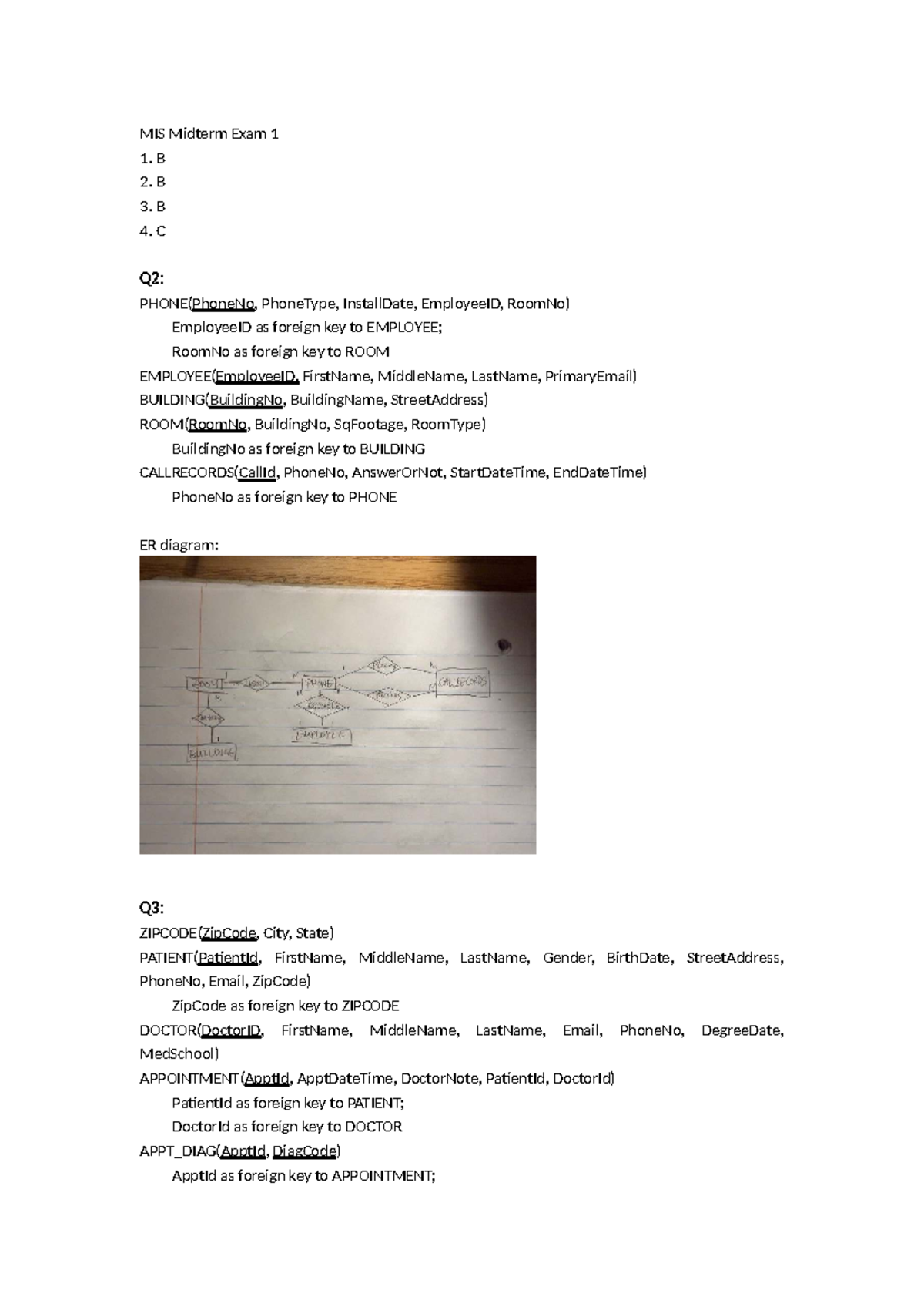 MIS Midterm Exam 1: Database ER Diagrams and Foreign Keys - Studocu