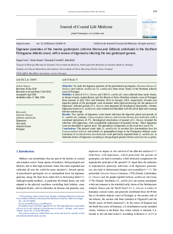 (PDF) Digenean parasites of the marine gastropods Littorina littorea ...
