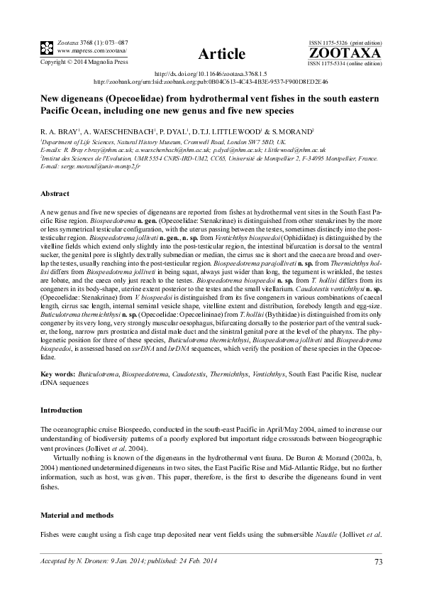 (PDF) New digeneans (Opecoelidae) from hydrothermal vent fishes in the ...