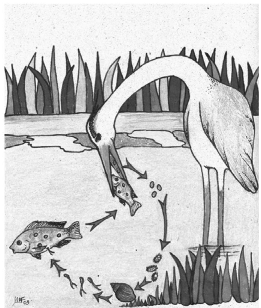 Life cycle of clinostomid digeneans. ciclo biologico di