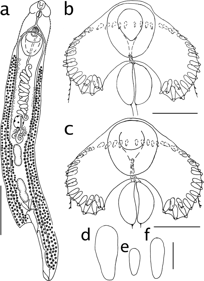 5 Representative drawings of digeneans reported from fish. (a ...