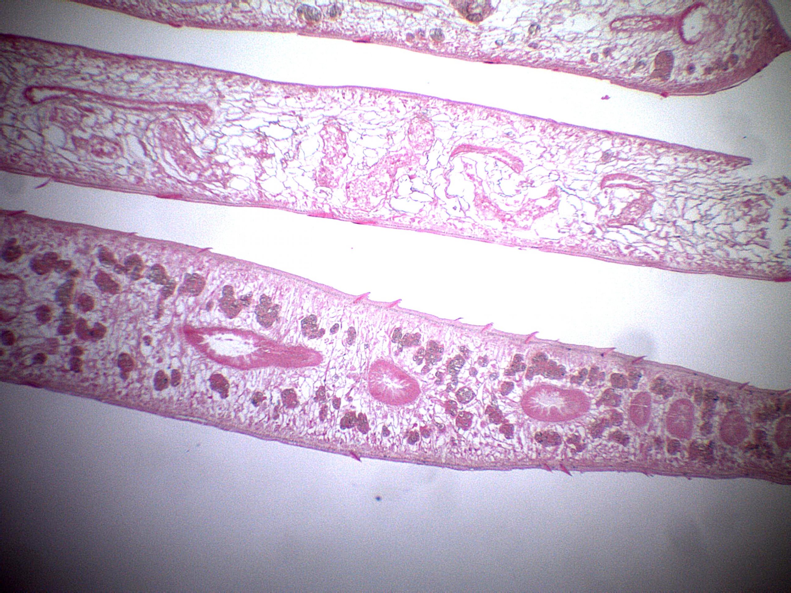 Digeneans in blood vessels in gills - YouTube