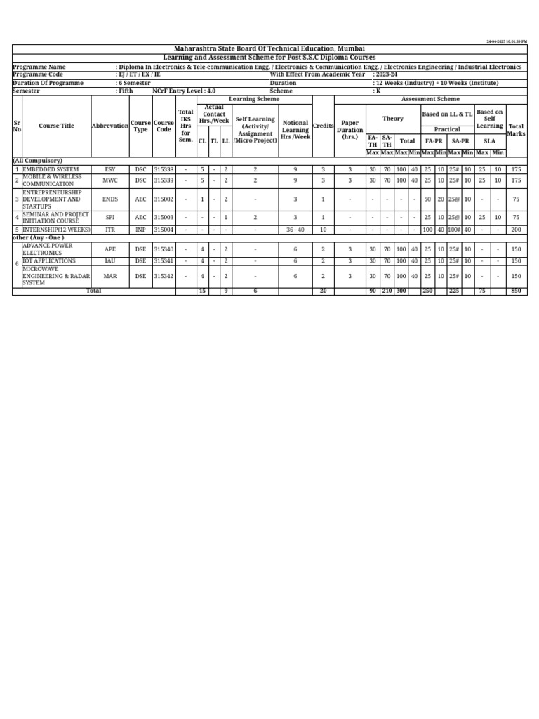 Diploma in Electronics & Telecom 2024 | PDF | Learning