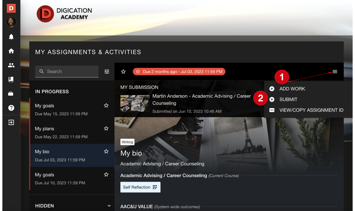 Submit work – Digication Help Desk