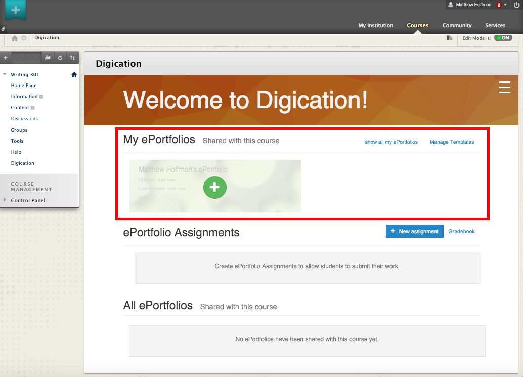 Using Digication in Blackboard: A Student Guide – Digication Classic