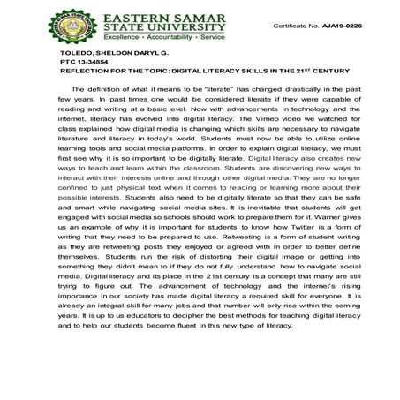 Reflection for Digital Literacy Skills in the 21st Century.docx