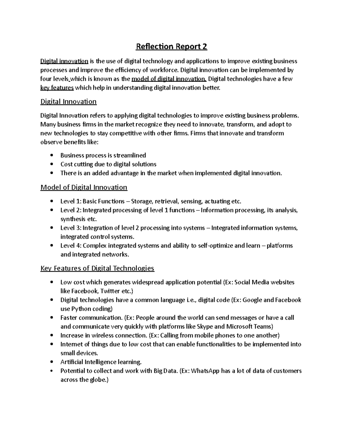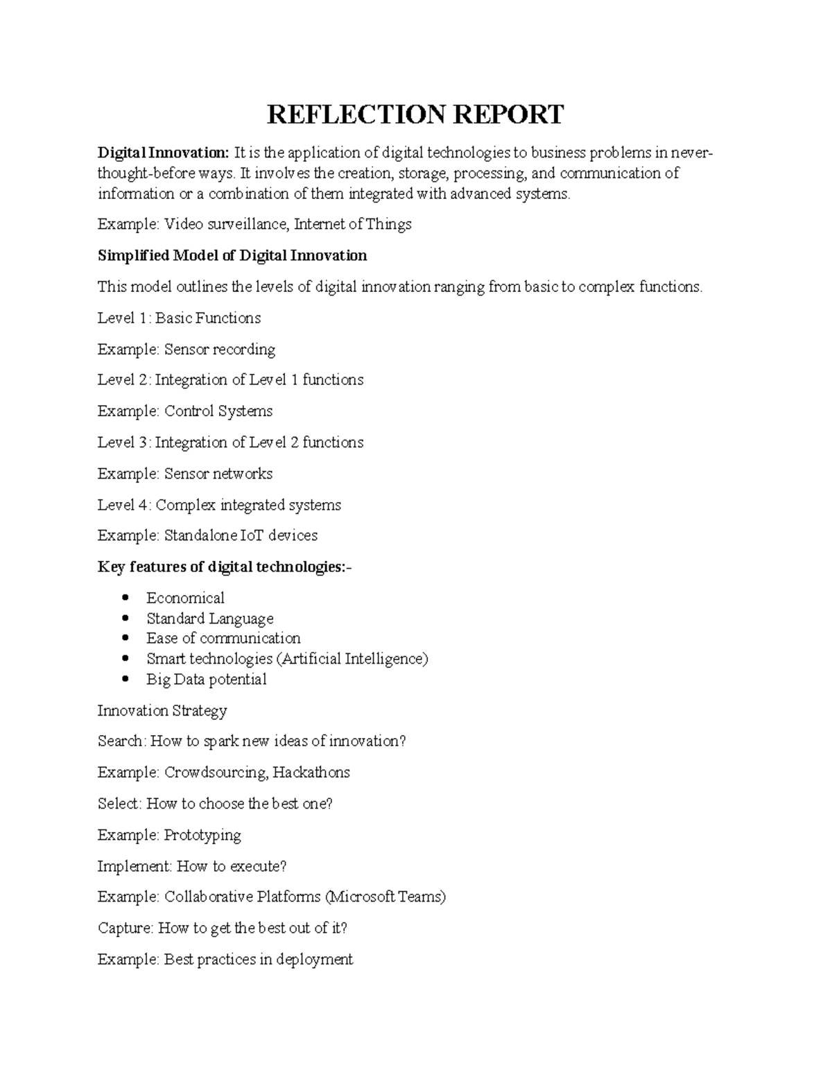 Reflection Report-1 - Digital innovation - REFLECTION REPORT Digital ...
