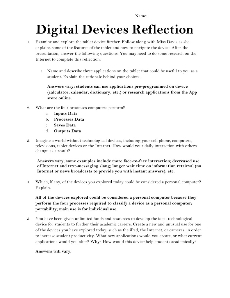 Digital Devices Reflection - KEY | PDF | Application Software | Tablet ...