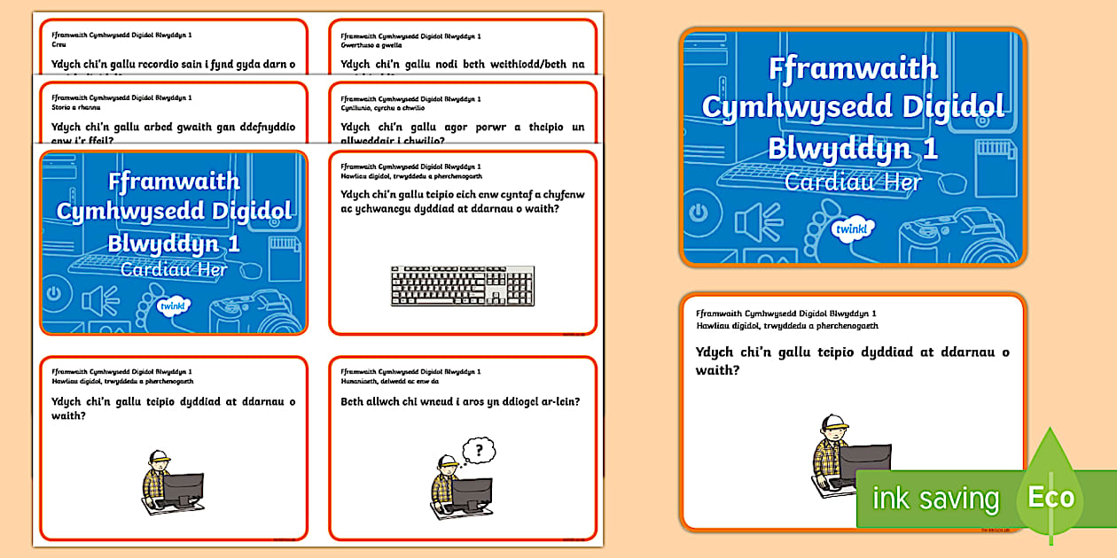 Fframwaith Cymhwysedd Digidol Blwyddyn 1 Cardiau Her
