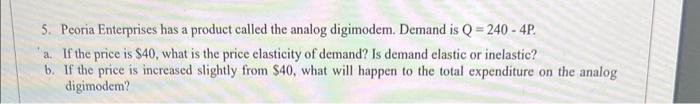 Solved 5. Peoria Enterprises has a product called the analog | Chegg.com