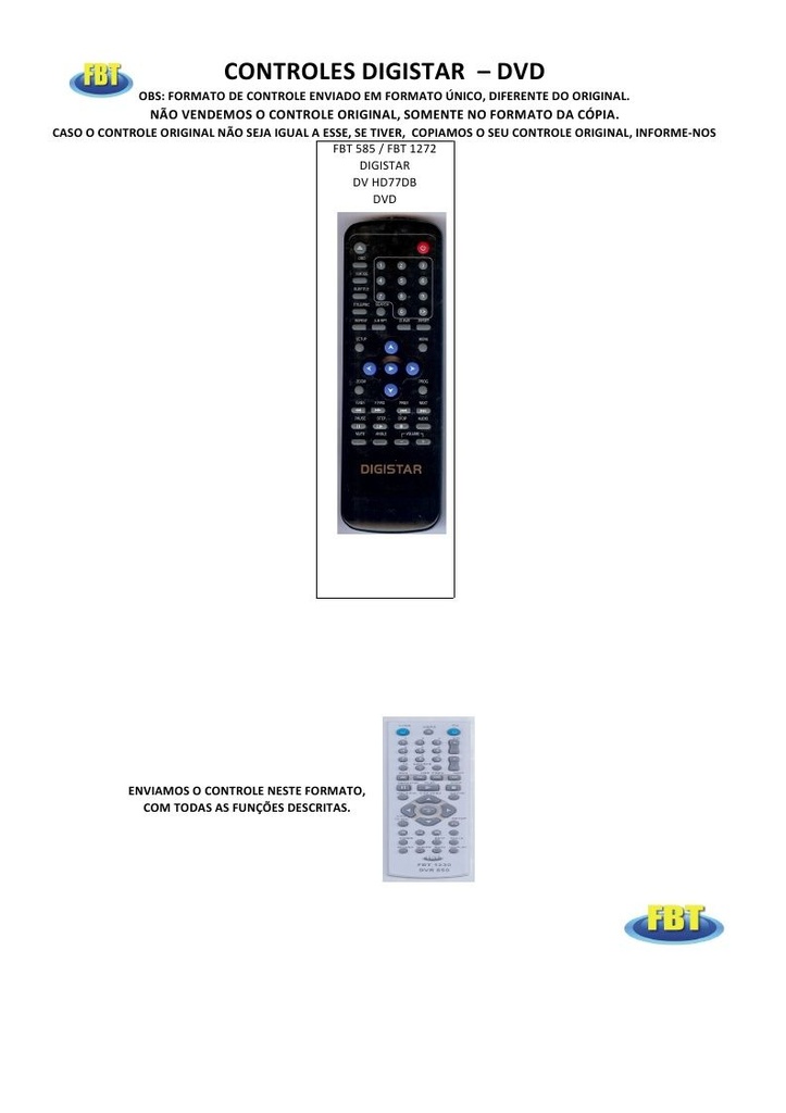 Controle Remoto Dvd Daewoo Days Daytek Digistar DigitalBras Digix - FBT ...