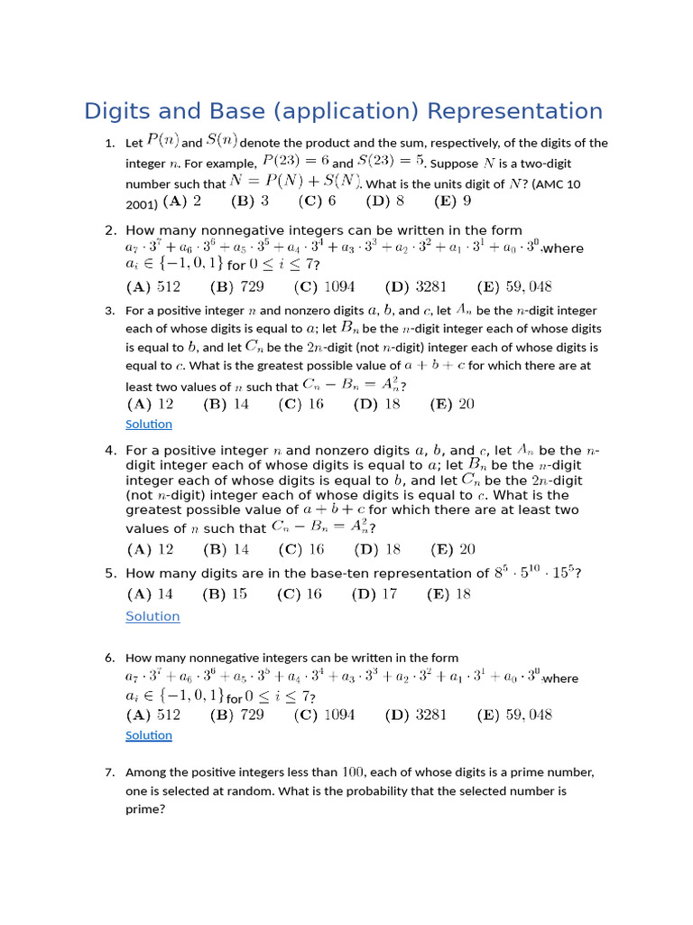 Digits and Base (Application) Representation | PDF | Integer | Prime Number