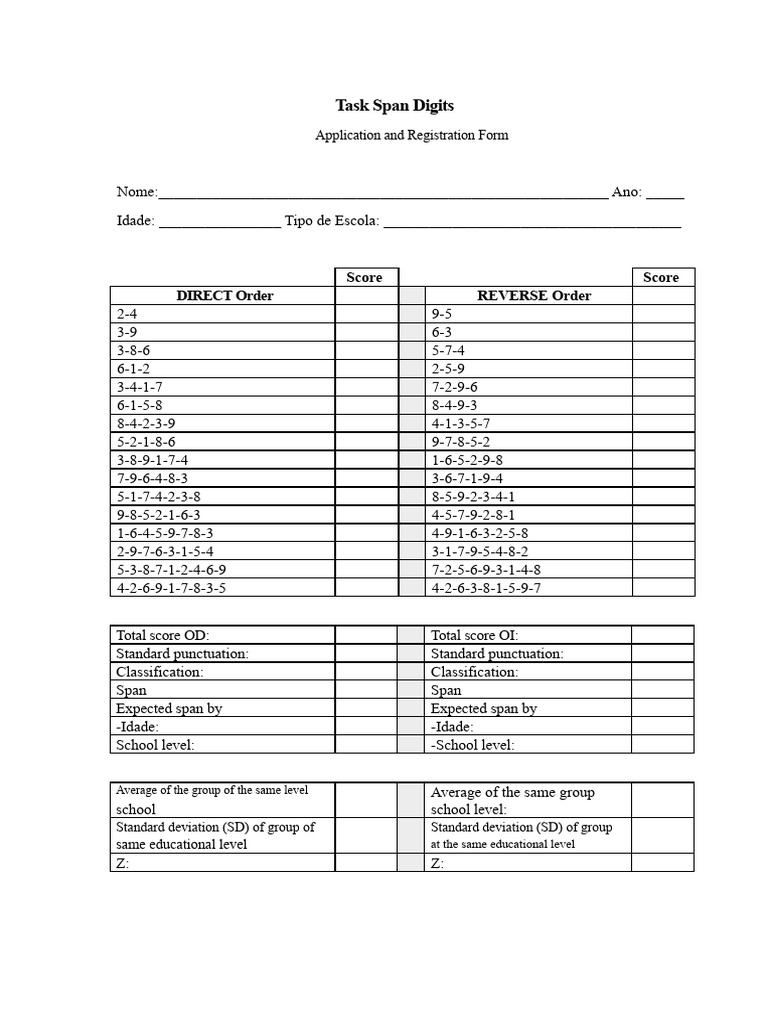 Task Span Digits Application and Registration Sheet | PDF | Descriptive ...