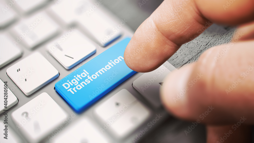 Digital Transformation - Modern Computer Keyboard with a Blue Keyboard ...