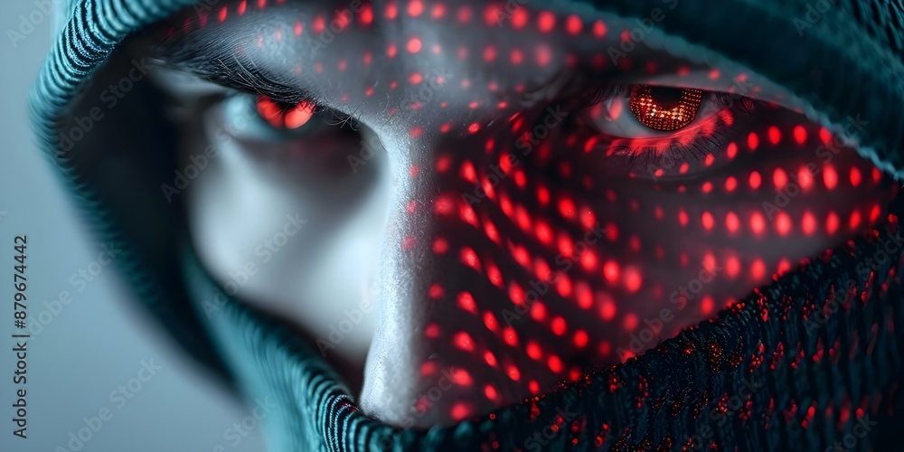 Digital artwork of a hacker made of diodes symbolizing a cybersecurity ...