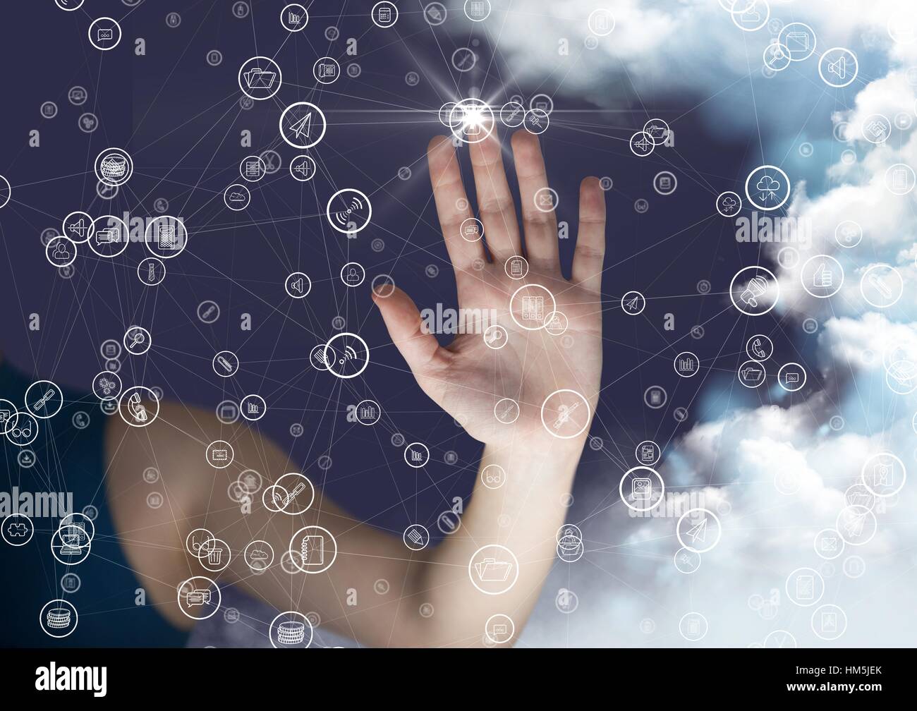 Woman using digital interference screen Stock Photo - Alamy