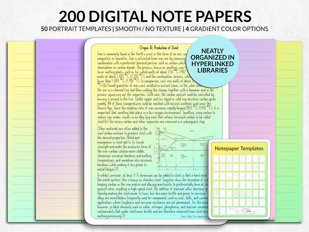 Digital Notepaper Templates, Gradient Digital Notebook Paper, Digital ...