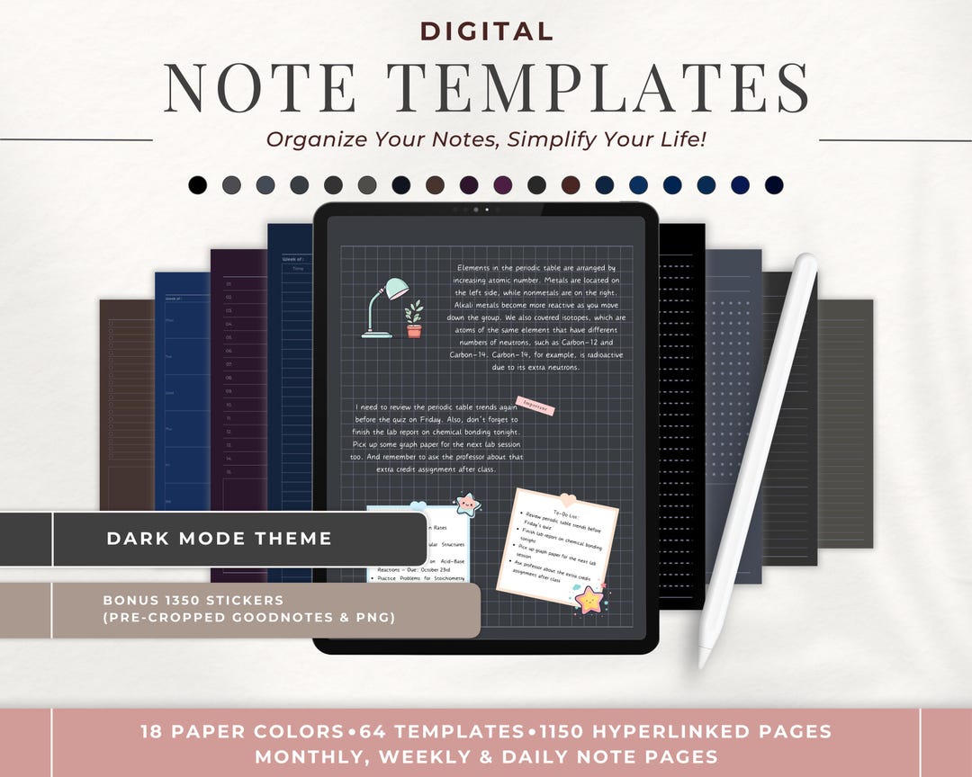 Dark Digital Note Templates Goodnotes, Note Taking Templates, Digital ...