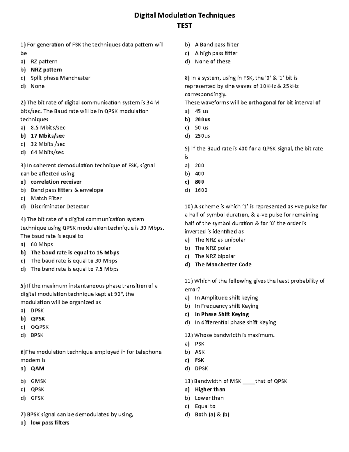 MCQ digital questions - Digital Modulation Techniques TEST For ...