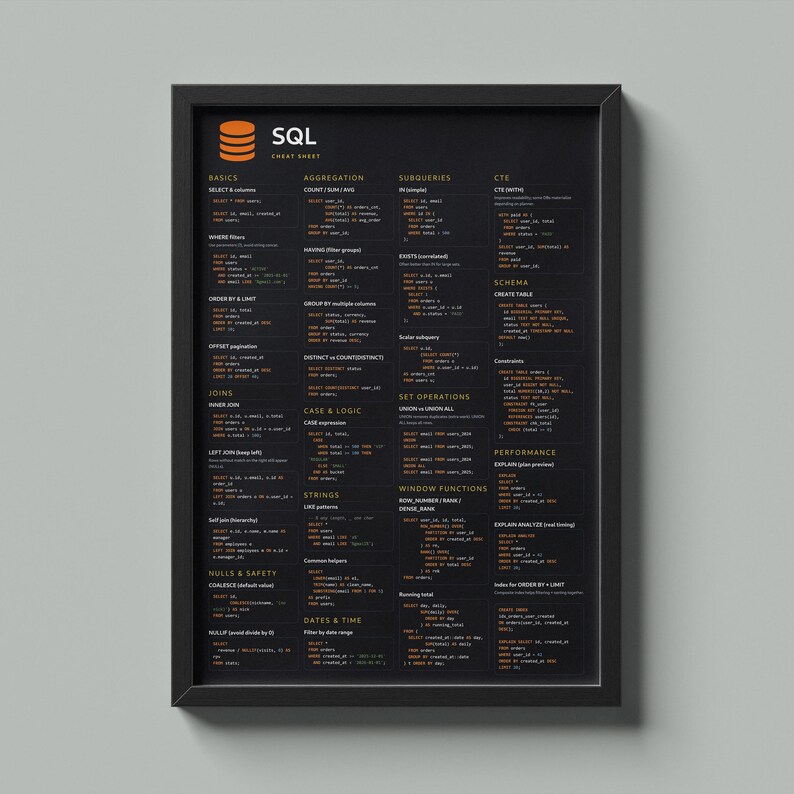 SQL Cheat Sheet Poster | Developer Office Decor (instant Download) - Etsy