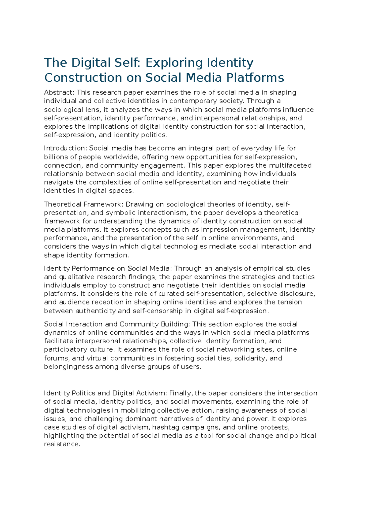 The Digital Self: Constructing Identity Online - mrooms Guide - Studocu