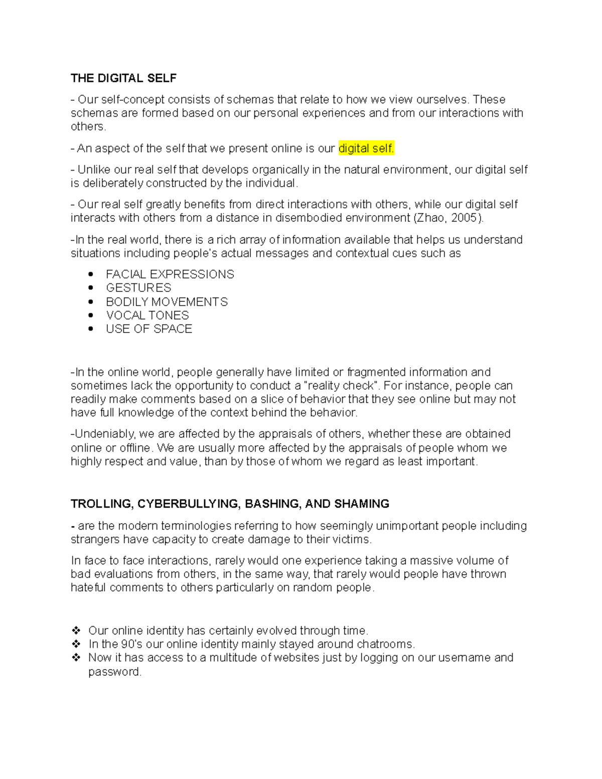 Understanding the Digital Self: Impact of Online Interactions | Course Hero