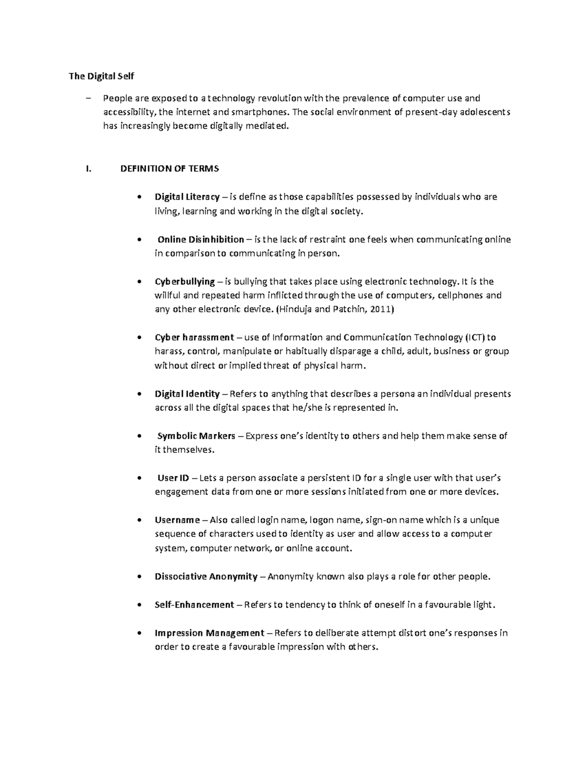 DIGITAL SELF HAND OUT.pptx - THE DIGITAL SELF:SELF AND OTHER IN ...
