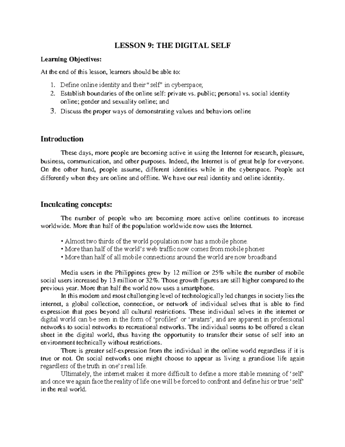 The-Digital-Self.ppt - The Digital Self Learning Objectives: 1.Define ...