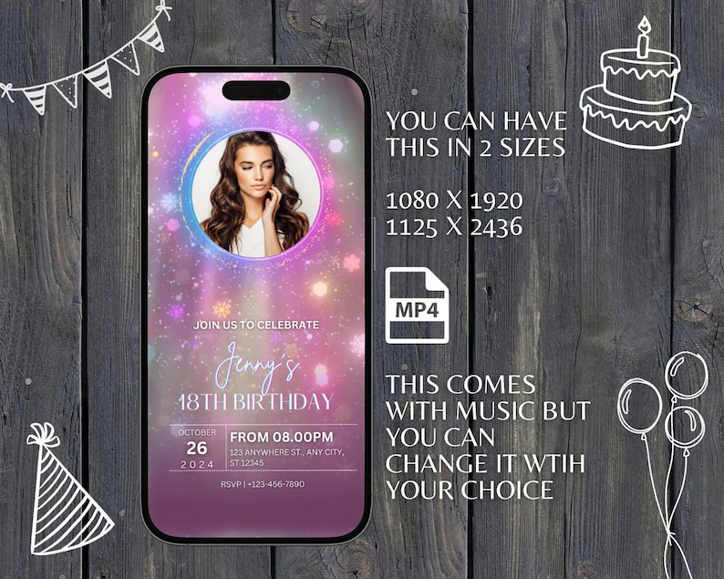 Editable Birthday Video Invitation Digital Invitation Instant Download ...