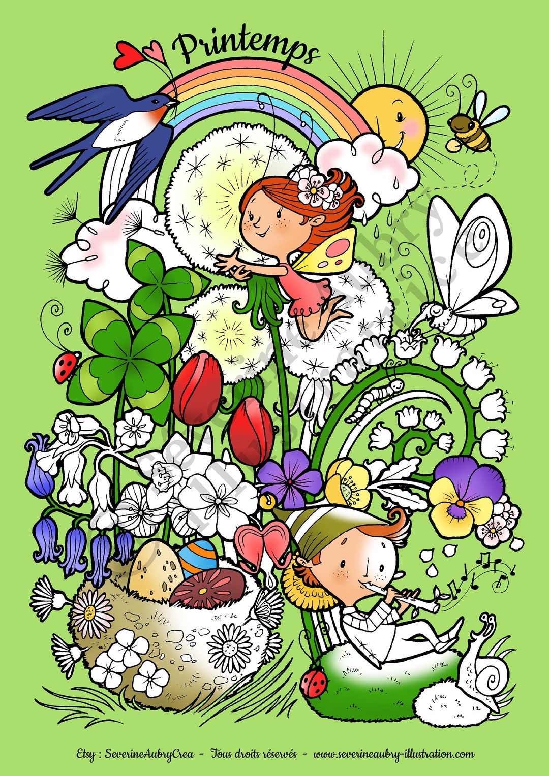 "spring" Coloring, Digital, to Print and Color. - Etsy