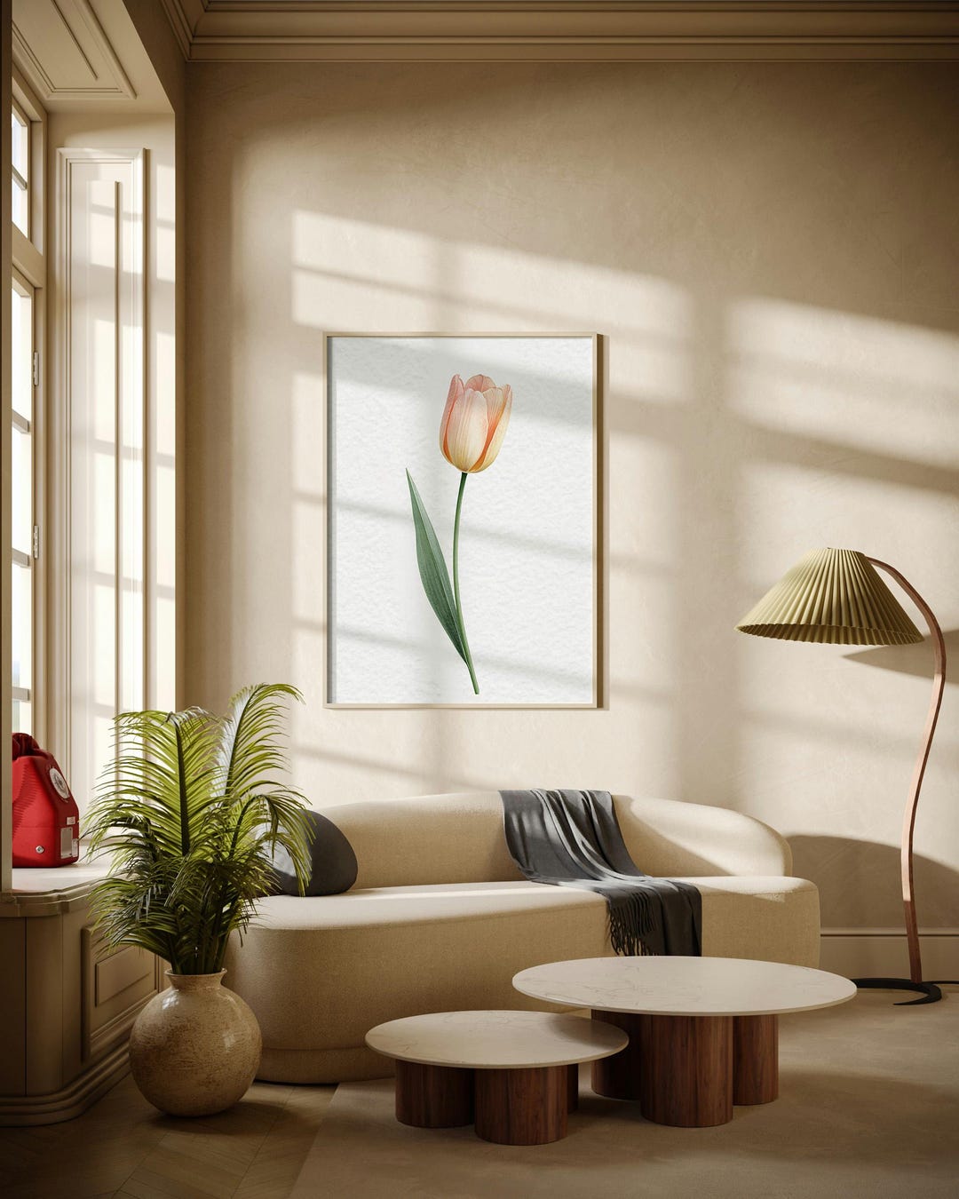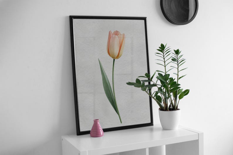 Pink Tulip Watercolor Art, Minimal Botanical Print, Scandinavian Floral ...