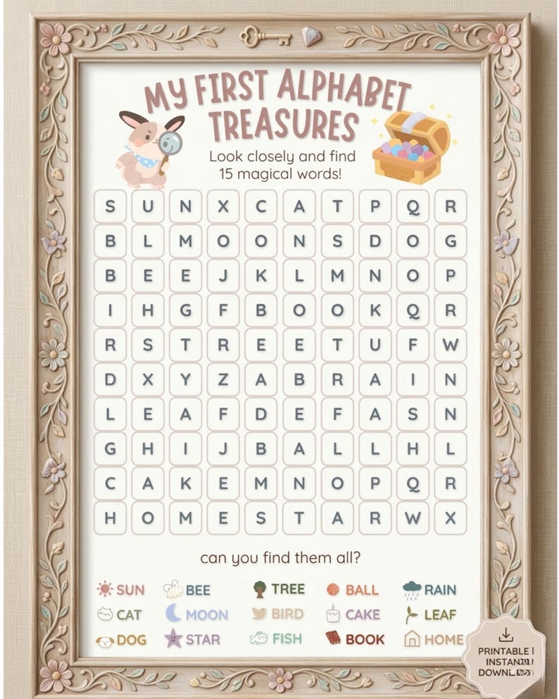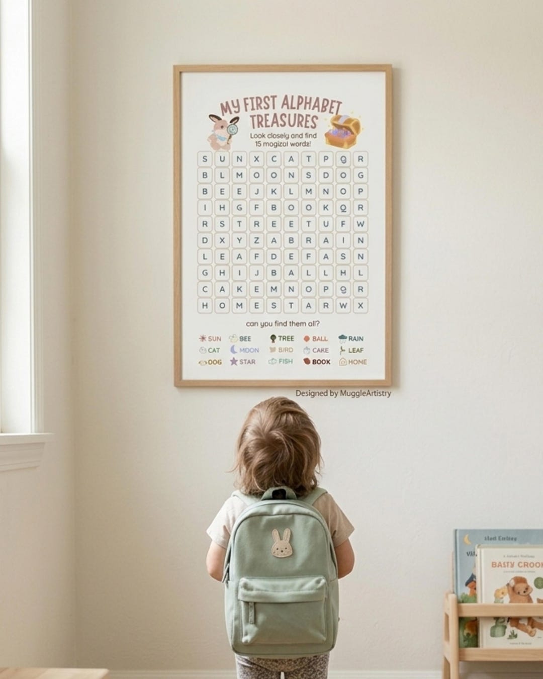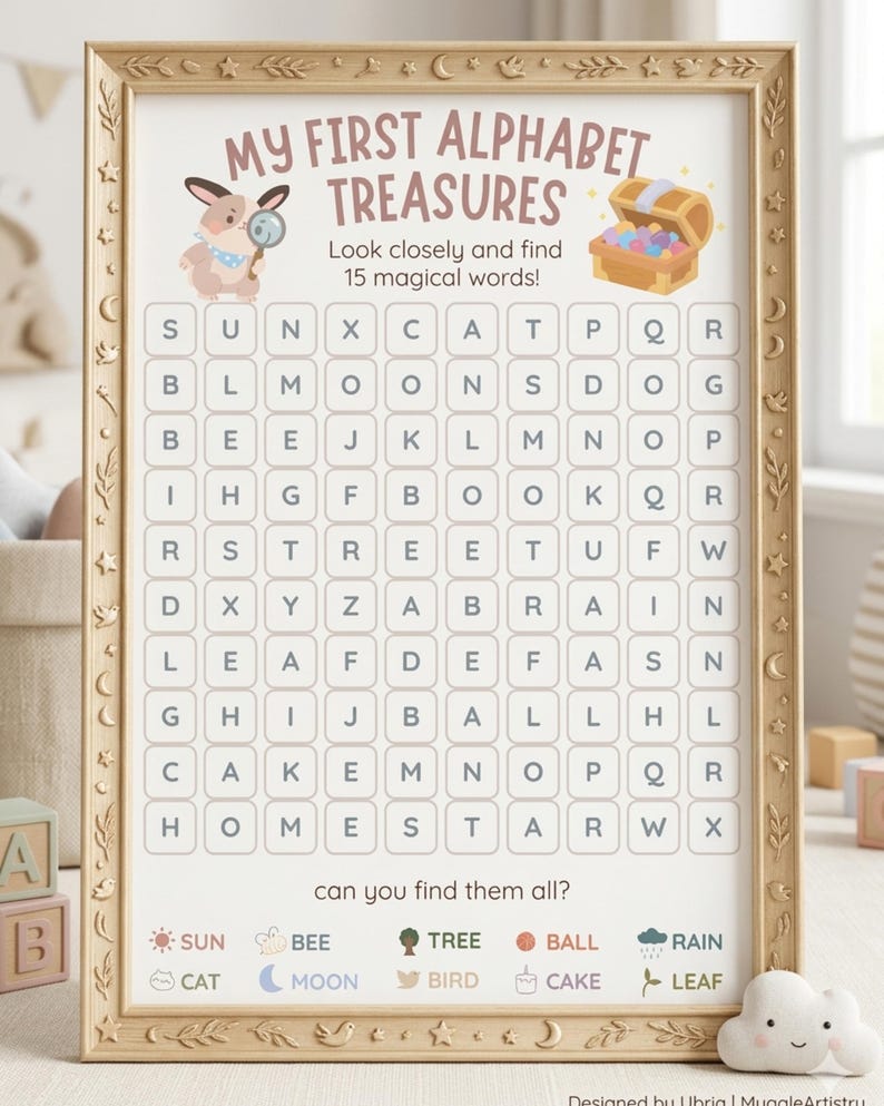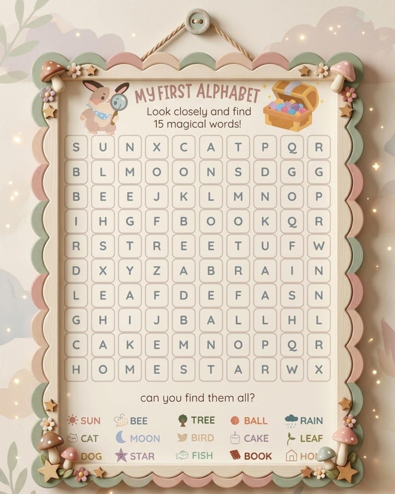 Kids' Educational Playroom Decor: Pastel Bunny Alphabet Word Search ...
