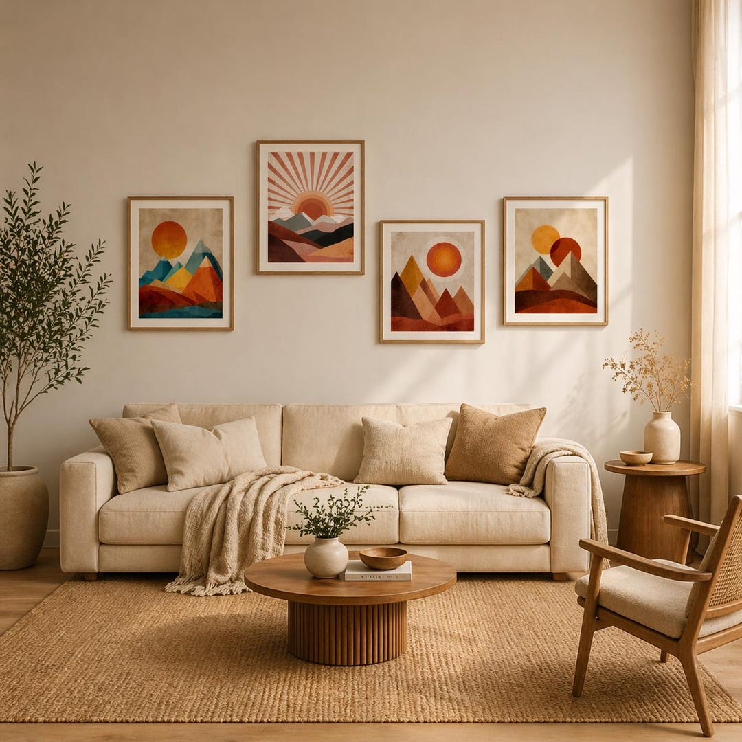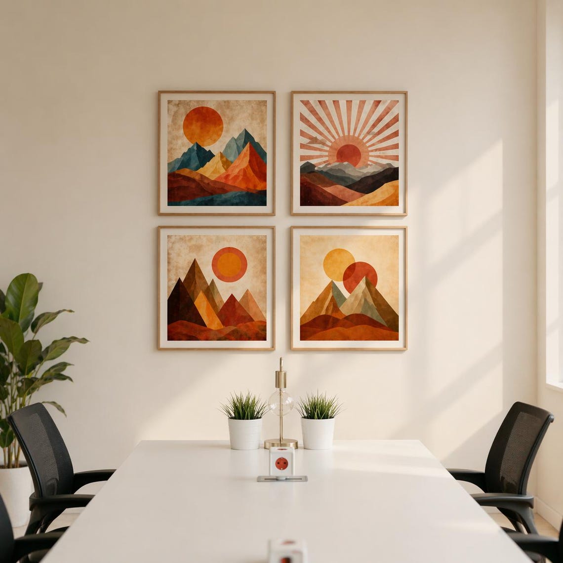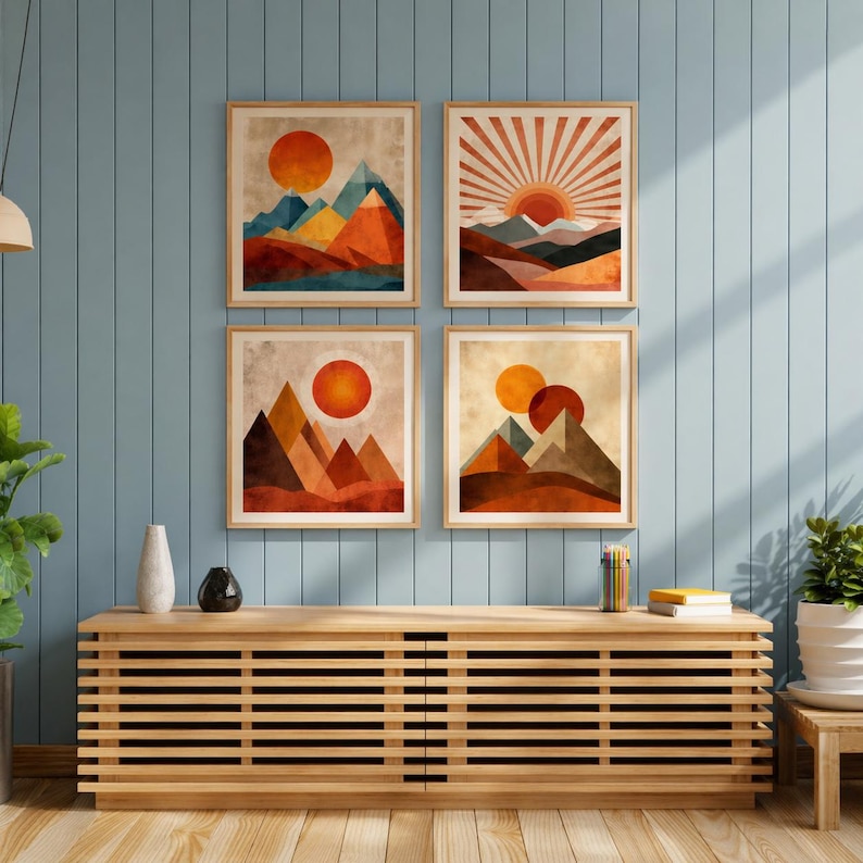 Set of 4 Mid Century Modern Sun Mountain Prints (digital Download) - Etsy