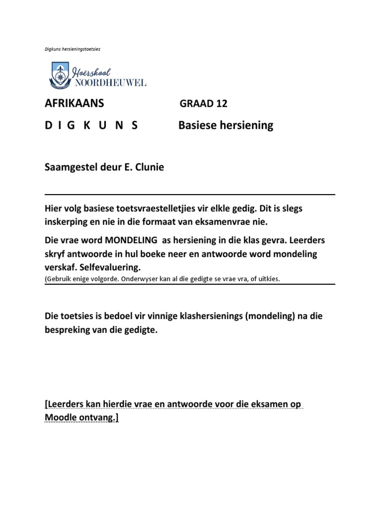 Leeuwenhof - Hoërskool: Kultuur – Digkuns Ons wens graag vir Marlizelle ...