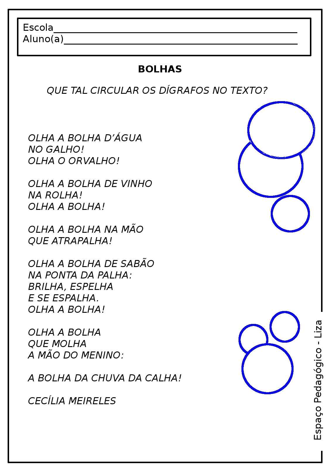 Diversas atividades com dígrafos! Texto "Bolhas" de Cecília Meireles ...