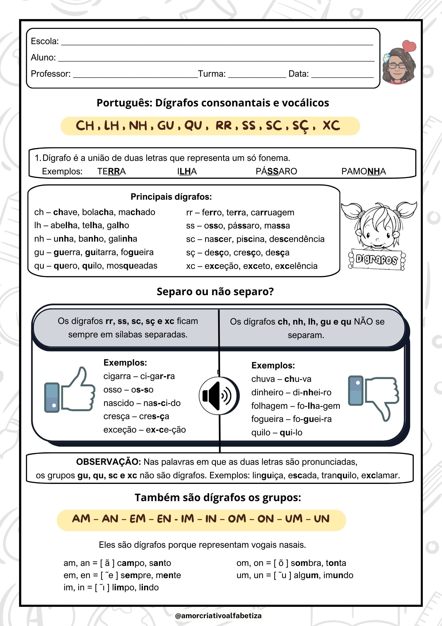 BLOG PROFESSOR ZEZINHO: O que são dígrafos? Diversas atividades com ...