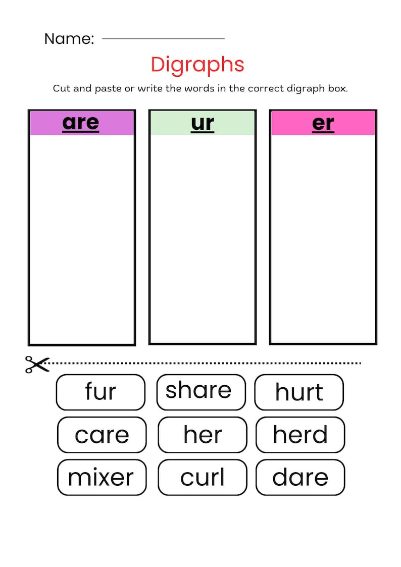 Digraphs er ir and ur word work – Artofit
